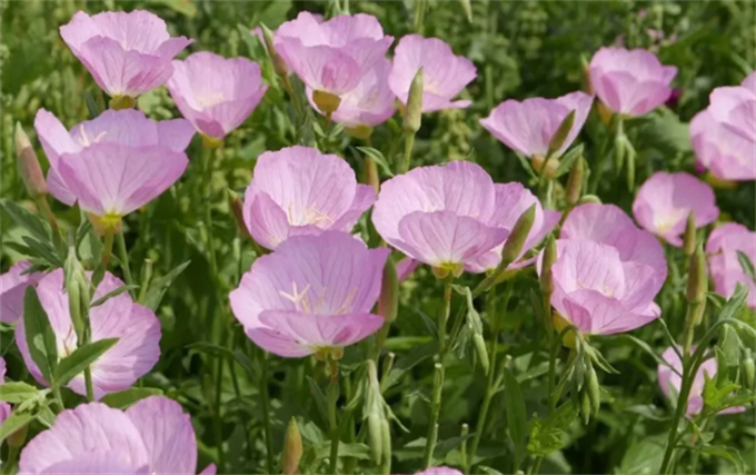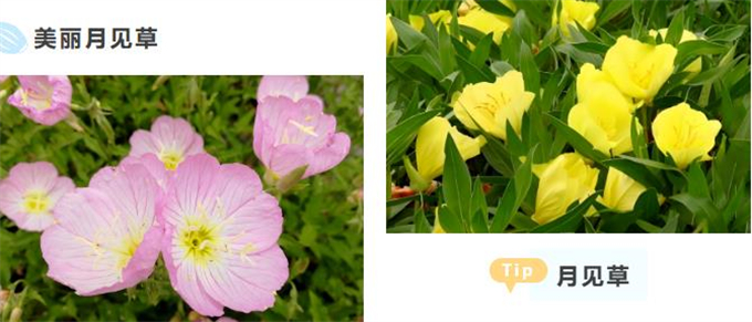 月见草,通常在傍晚或夜间开放,花朵展开后持续到次日清晨凋谢。而美丽月见草,白天、晚上都能开花,观赏性能较高。