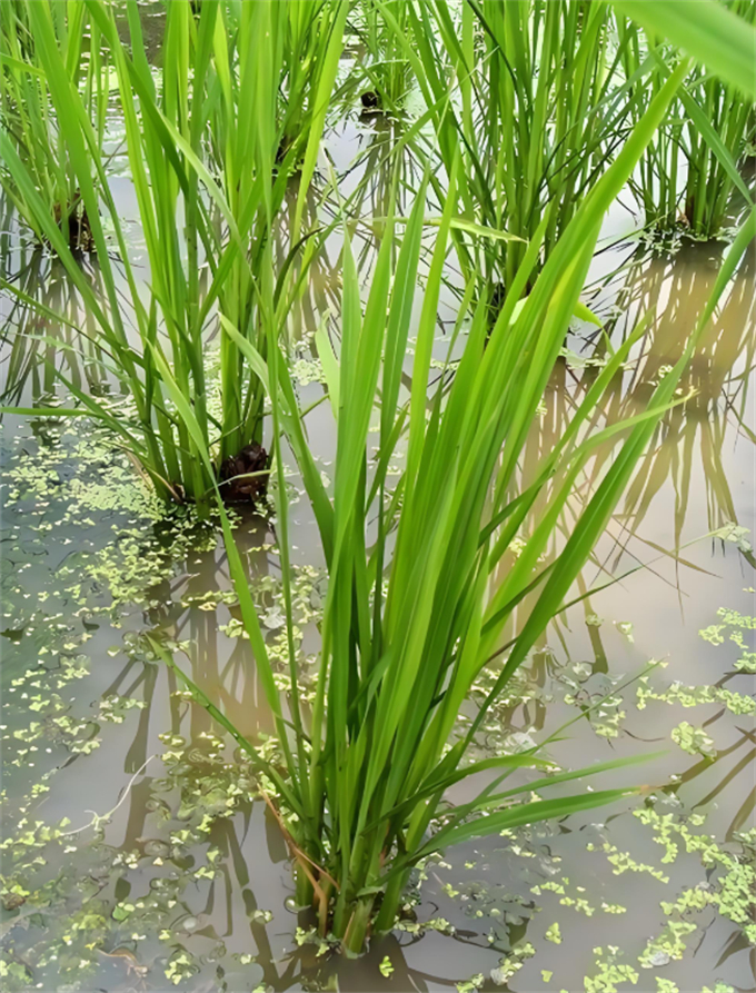 茭白属于多年生水生草本,具有独特的生命周期。在生长初期,它与普通禾本科植物无异,通过根系从水田或沼泽的淤泥中吸收养分,长出细长的叶片。