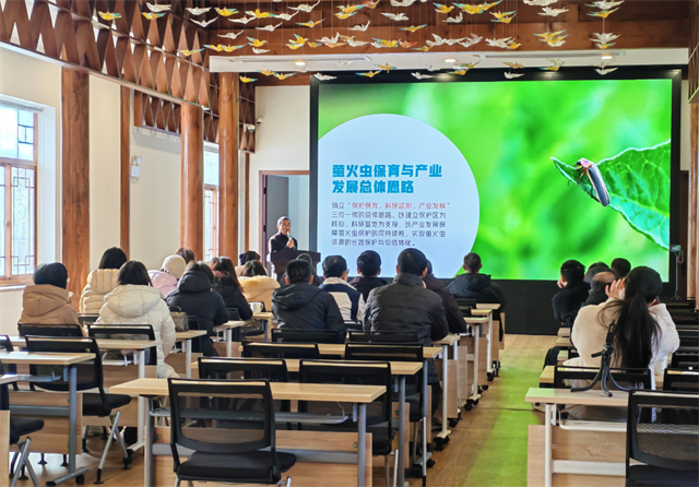 课堂上以案例讲解系统普及湿地类型、功能与生态价值,重点介绍常熟本地湿地资源分布、保护现状及规划,介绍了栖息于此的雷氏萤、付氏萤两种 “三有保护” 动物,让大家直观认识到南湖湿地的生物多样性。